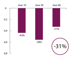 - (1) Etude clinique randomisée en triple aveugle monocentrique, sur le collagène, réalisée en 2023, sur 63 adultes pendant 8 semaines.