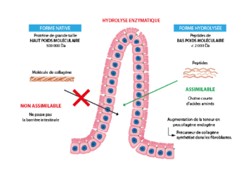 Ces tripeptides de collagène ont un très faible poids moléculaire de 300 Daltons, ce qui leur permet d’être hautement biodisponibles et rapidement assimilés par l’organisme.